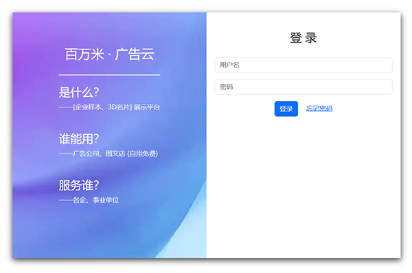 产品内容:云样本+3D名片,为企事业单位提供多媒体展示平台。